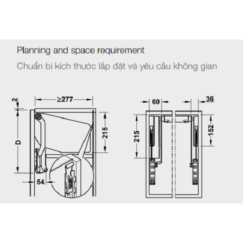 Bộ tay nâng Free Up E Hafele 372.29.711 nắp xám