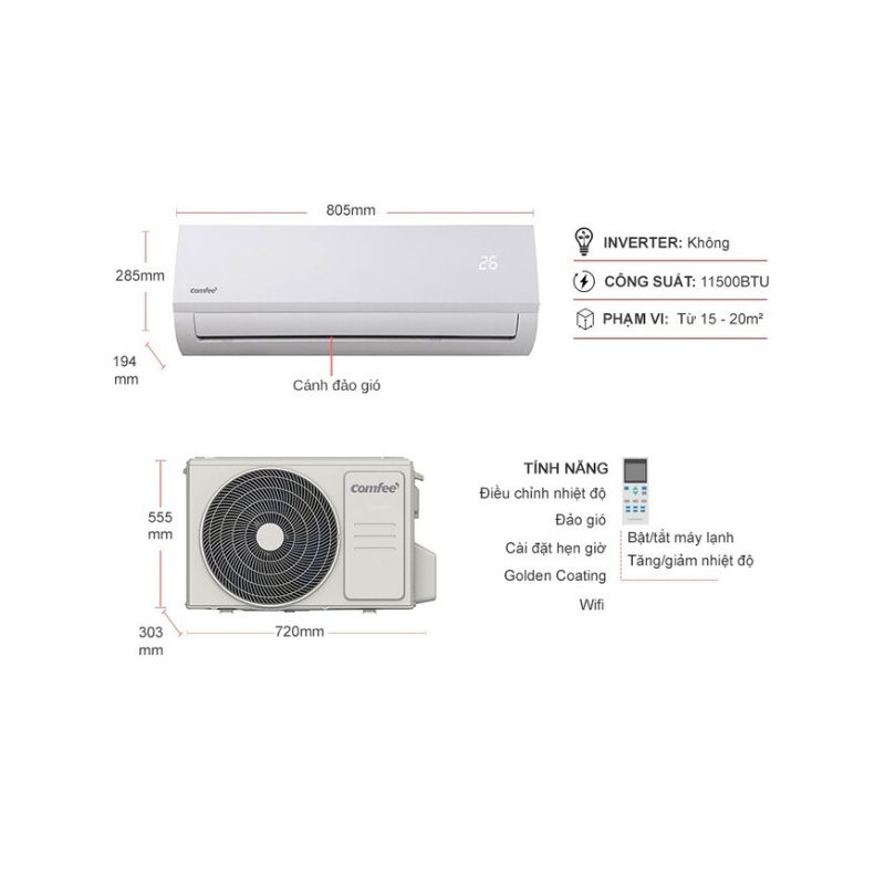 Máy lạnh Comfee 1.5 HP CFS-13FWF / CFS-12FGY là dòng điều hòa tiêu chuẩn (non-Inverter) thuộc phân khúc giá rẻ, phù hợp cho không gian từ 15–20m² như phòng ngủ, phòng trọ hoặc văn phòng nhỏ. Sản phẩm hướng đến người dùng cần một chiếc máy lạnh giá tốt – dễ sử dụng – đủ tính năng cơ bản, đồng thời vẫn đảm bảo khả năng làm mát ổn định và bền bỉ.
